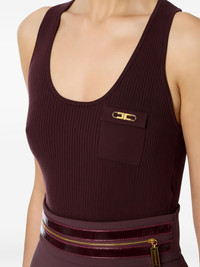 ribbed breast-pocket tank top Highlights - Merlot - Ribbed knit - Scoop neck - Breast pocket - Golde-tone logo - Side slits Imported Composition Lyocell 64%, Polyamide 20%, Silk 16% Washing instructions Read Manufacturer Guidelines
