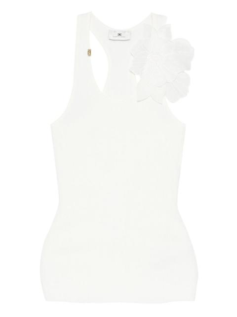 ribbed flower-embellished top Highlights - Black - Ribbed knit - Racer back - Flower applique - Sheer overlay - Embroidered details Made in Italy Composition Lyocell 64%, Polyester 20%, Silk 16% Washing instructions Read Manufacturer Guidelines