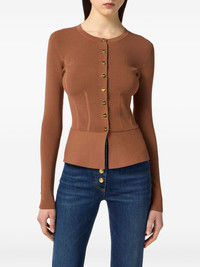 ribbed jewel-button cardigan