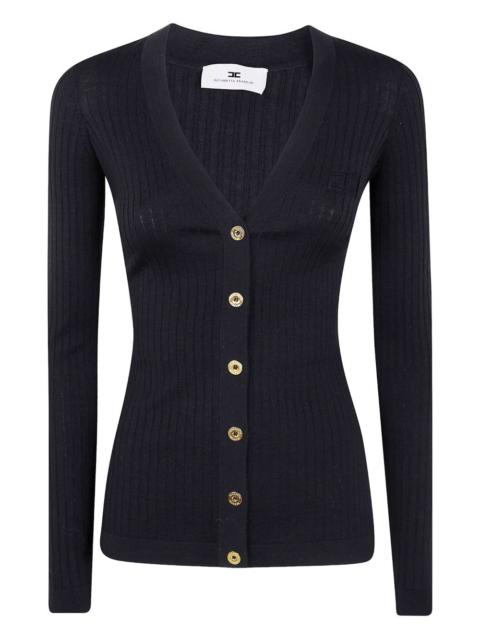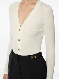 ribbed long-sleeve cardigan Highlights - Milk - Ribbed knit - V-neck - Long sleeves - Gold-tone buttons - Logo detail Imported Composition Virgin Wool 70%, Silk 20%, Cashmere 10% Washing instructions Read Manufacturer Guidelines