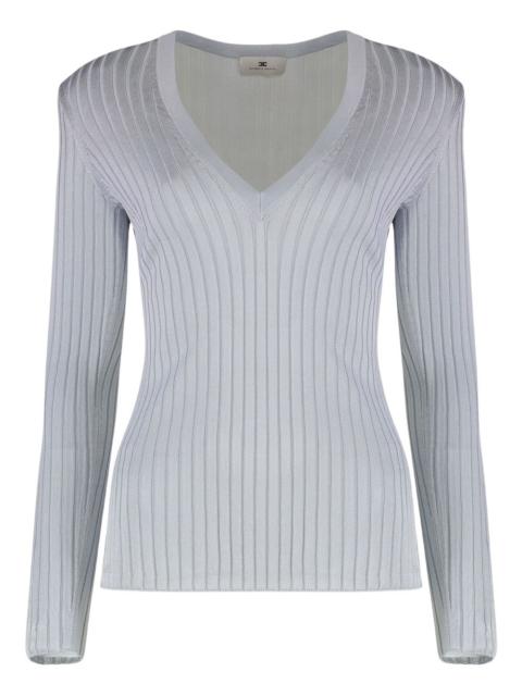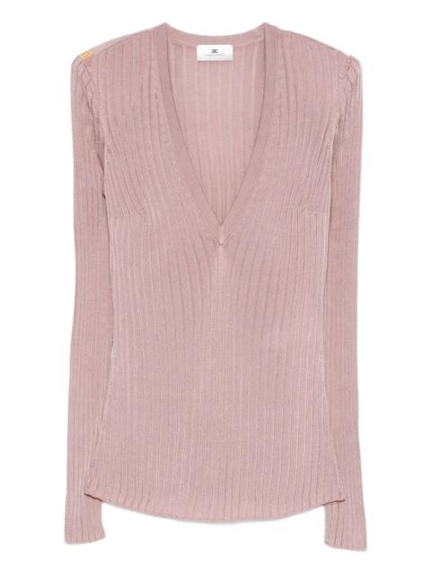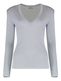 ribbed padded-shoulders top Highlights - Light grey - Ribbed knit - V-neck - Long sleeves - Padded shoulders Made in Italy Composition Viscose 100% Washing instructions Read Manufacturer Guidelines