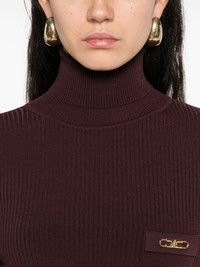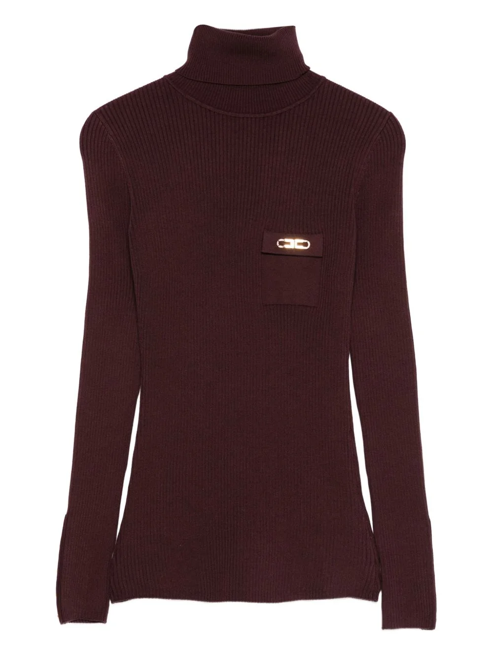ribbed turtleneck top Highlights - Dark purple - Ribbed texture - Turtleneck - Long sleeves - Pocket detail - Gold-tone logo plaque Imported Composition Lyocell 64%, Polyamide 20%, Silk 16% SIZE & FIT Model measurements Height 5 ft 9 in(1.75 m) Bust/Chest 32.67 in(83 cm) Hips 36.22 in(92 cm) Waist 24.8 in(63 cm) Washing instructions Hand Wash