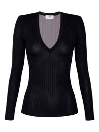 ribbed V-neck sweater Highlights - Black - Ribbed knit - V-neck - Long sleeves Imported Composition Viscose 100% Washing instructions Read Manufacturer Guidelines