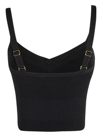 ribbed V-neck top Highlights - Black - Ribbed texture - V-neck - Adjustable straps - Gold-tone clasp details Imported Composition Viscose 80%, Polyamide 20% Washing instructions Read Manufacturer Guidelines