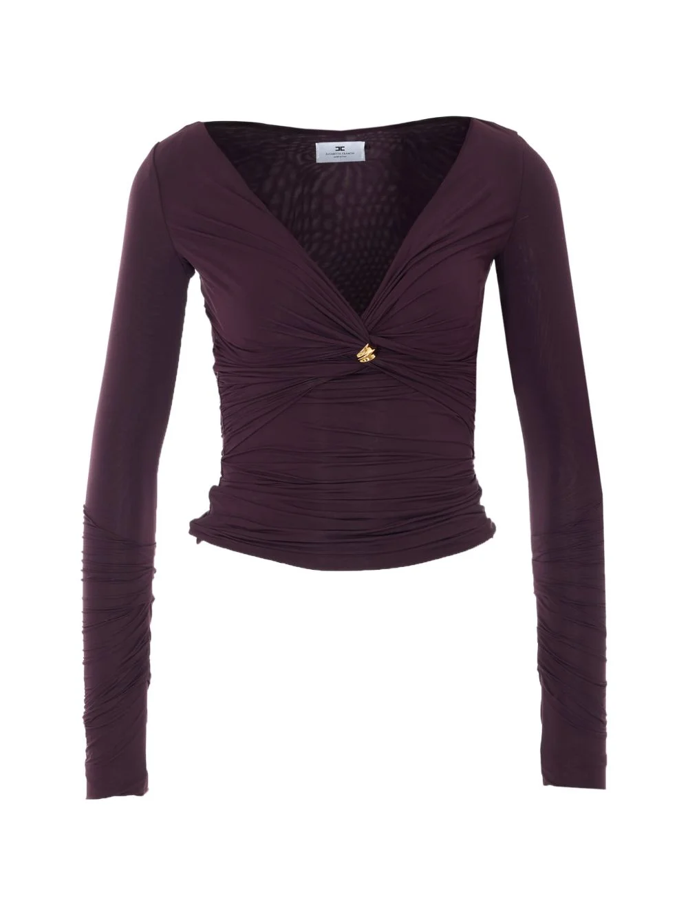 ring-detail ruched top Highlights - Brown - V-neck - Ring detail - Long sleeves - Slim fit Made in Italy Composition Viscose 90%, Spandex/Elastane 10% Washing instructions Read Manufacturer Guidelines