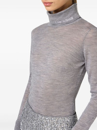 roll neck semi-sheer jumper Highlights - Heather grey - Virgin wool - Fine knit - Semi-sheer construction - Embroidered logo - Roll neck - Long sleeves - Ribbed cuffs and hem Imported Composition Virgin Wool 100% SIZE & FIT FittingInformation Designed for a slim fit that sits just away from the body offering a close yet comfortable fit Made with a lightweight knit, this piece offers some stretch
