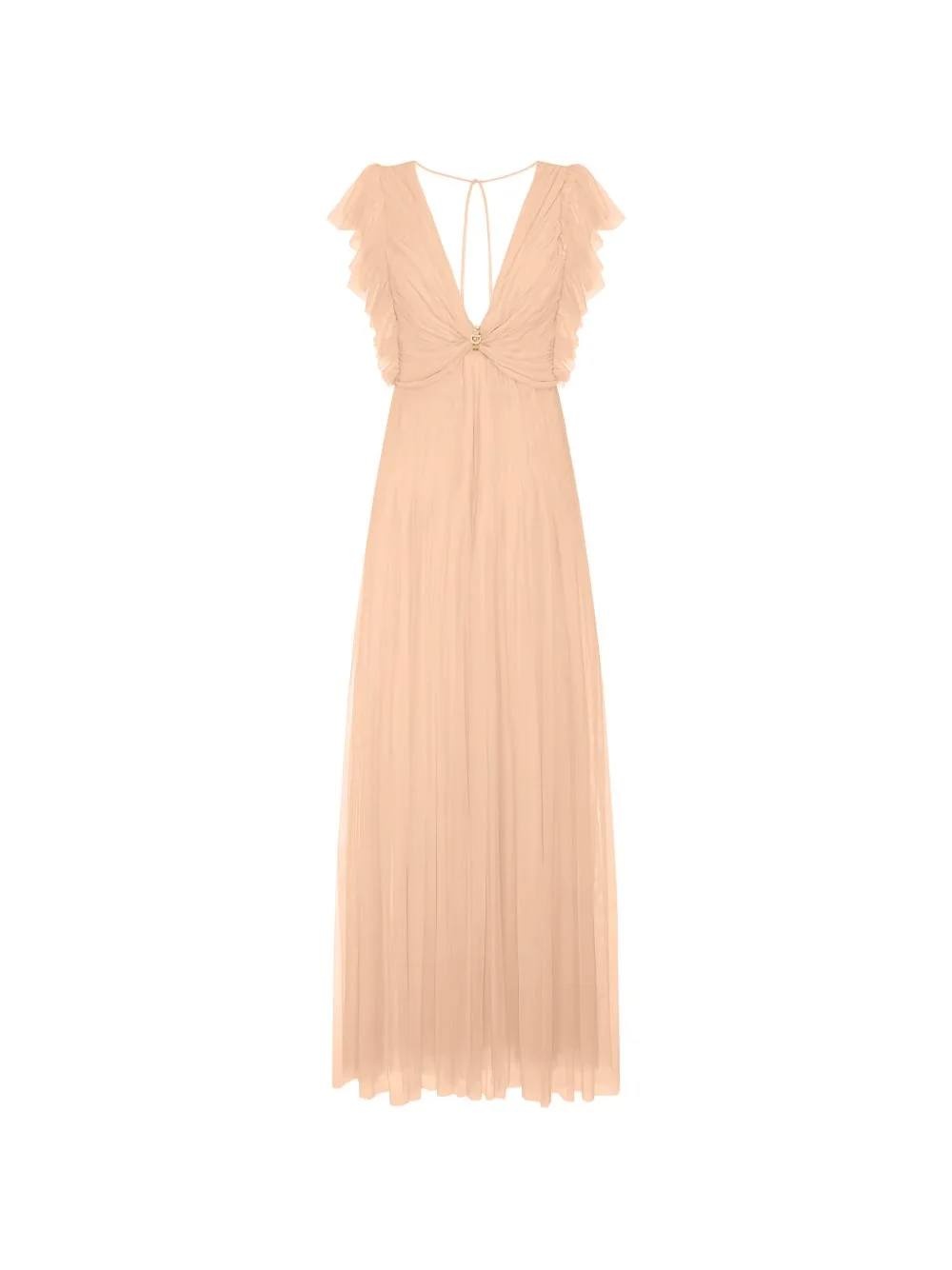 ruffled maxi dress Highlights - Pale peach - Tulle fabric - Rhinestone detail - V-neck - Cap sleeves - Draping Imported Composition Polyamide 100% Washing instructions Read Manufacturer Guidelines