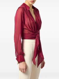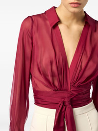 sash-detail blouse Highlights - Cherry red - Voile fabric - Crossover v-neck - Sash - Long sleeves - Jewel cufflinks Made in Italy Composition Silk 100% Washing instructions Read Manufacturer Guidelines