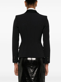 satin-detail crepe blazer Highlights - Black - Double-breasted button fastening - Two side flap pockets - Buttoned cuffs - Shoulder pads Made in Italy Composition Outer: Polyester 96%, Viscose 18%, Elastane 4% Lining: Polyester 92%, Acetate 82%, Elastane 8% SIZE & FIT Model measurements Height 5 ft 10 in(1.77 m) Bust/Chest 33.07 in(84 cm) Hips 37 in(94 cm) Waist 24.8 in(63 cm) FittingInformation Designed for a slim fit that sits just away from the body offering a close yet comfortable fit The internal shoulder pads offer a structured shape Made from a midweight stretch fabric, this piece offers elasticity and flexibility when worn Washing instructions Dry Clean Only