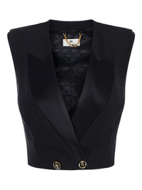 satin lapels button waistcoat Highlights - Black - Crepe fabric - Satin inlaid lapels - Enamelled logo buttons - Structured shoulders - Double-breasted closure Made in Italy Composition Viscose 60%, Virgin Wool 40% Washing instructions Read Manufacturer Guidelines