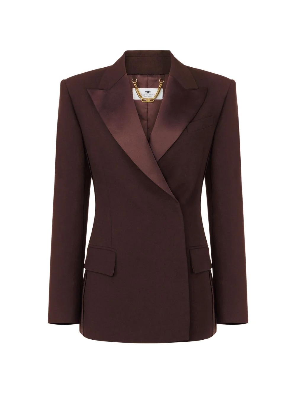 satin lapels double-breasted jacket Highlights - Brown - Peak lapels - Double-breasted - Structured shoulders - Fitted line - Oversized fit Imported Composition Polyester 93%, Lycra 7% Washing instructions Read Manufacturer Guidelines