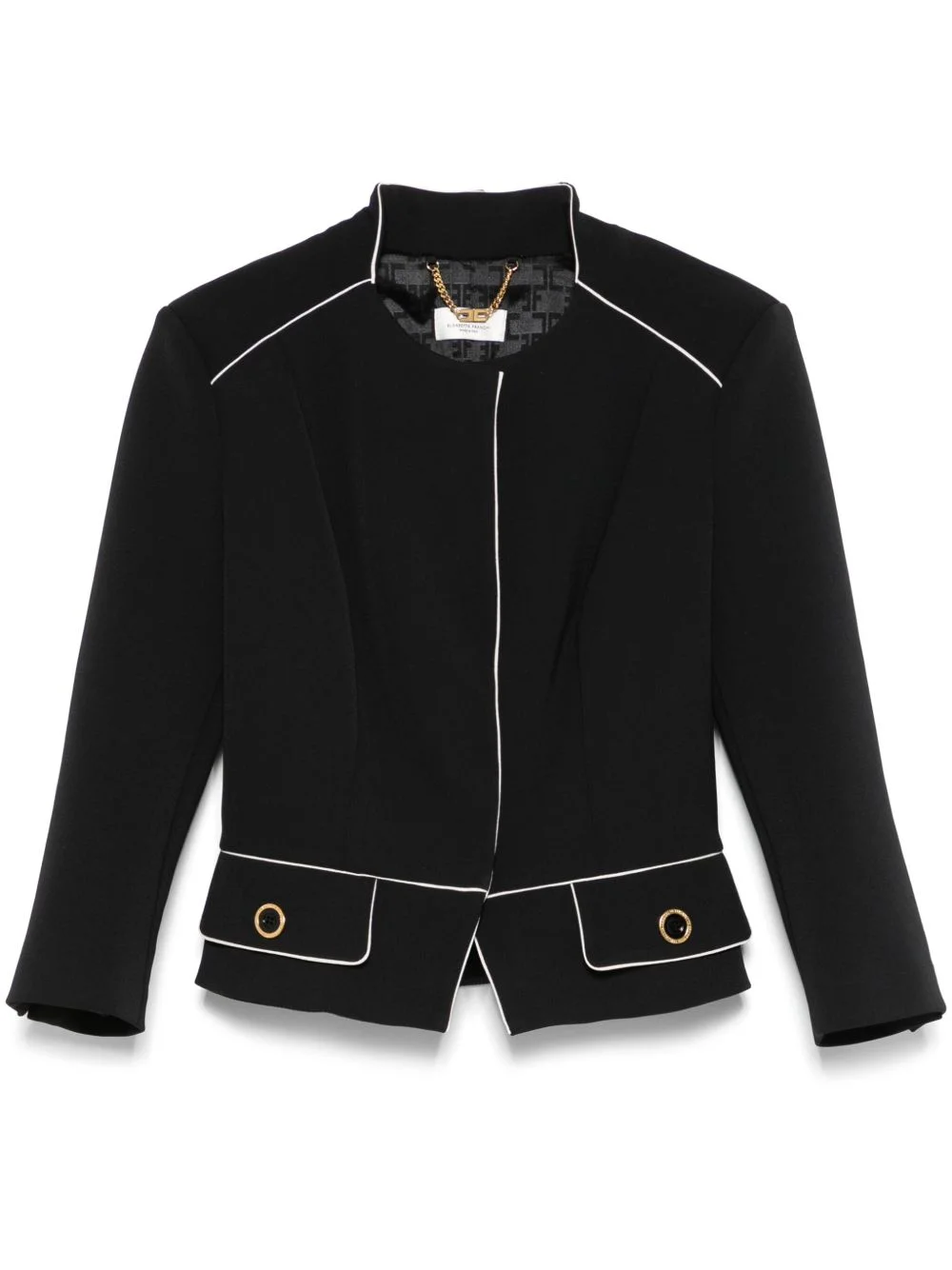 scarf-detailed jacket Highlights - Black - Concealed front press-stud fastening - Shoulder pads - Buttoned cuffs - Faux pocket detail Made in Italy Composition Lining: Polyester 97%, Elastane 3% Outer: Polyester 96%, Elastane 4% SIZE & FIT Model measurements Height 5 ft 10 in(1.78 m) Bust/Chest 33.85 in(86 cm) Hips 36.61 in(93 cm) Waist 26.77 in(68 cm) FittingInformation Designed for a slim fit that sits just away from the body offering a close yet comfortable fit The internal shoulder pads offer a structured shape Made from a midweight stretch fabric, this piece offers elasticity and flexibility when worn Washing instructions Dry Clean Only