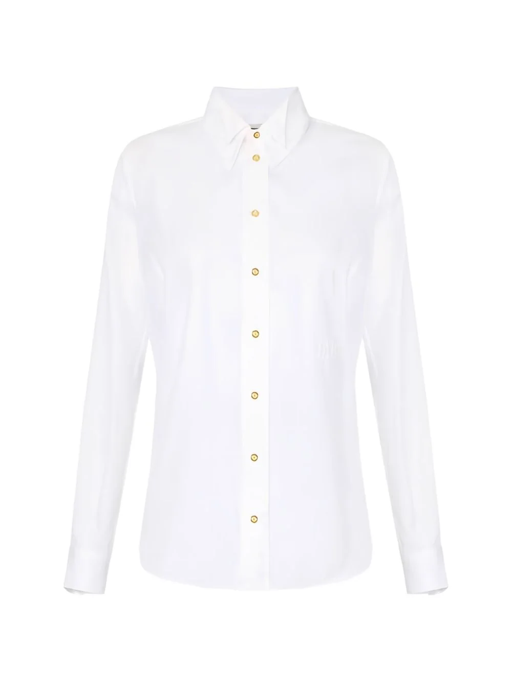 double-collar logo-embroidered shirt Highlights - White - Gold-tone button - Long sleeves - Regular fit - Embroidered logo - Double collar Made in Italy Composition Cotton 100% Washing instructions Read Manufacturer Guidelines