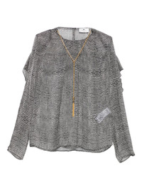 ruffled animal-print top Highlights - Black - Reptile print - Ruffled sleeves - Tassel necklace - Sheer fabric - Round neck Made in Italy Composition Silk 100% Washing instructions Hand Wash