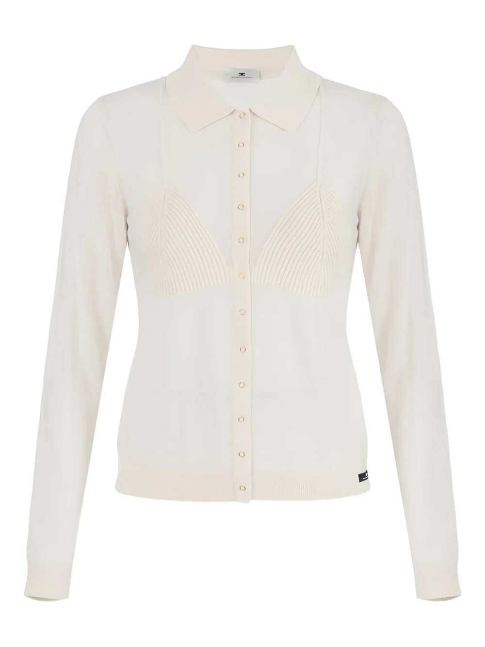 shirt-collar ribbed cardigan Highlights - White - Wool blend - Shirt collar - Long sleeves - Ribbed workmanship - Label at the bottom Imported Composition Wool 77%, Polyester 19%, Polyamide 4% Washing instructions Read Manufacturer Guidelines