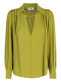 collared blouse Highlights - Green - Long sleeves - Button cuffs - V-neck - Gold-tone logo embellishment Made in Italy Composition Viscose 100% Washing instructions Read Manufacturer Guidelines