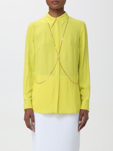 DESCRIPTION - Style: Classic - Logo: Metallic, Monogram - Neck: French - Shoulders: Regular - Closure: Concealed, With buttons - Pockets: Patch pocket with flap and button - Bottom: With straight hemline - Sleeves: Long sleeve shirts - Materials: Crepe - Pattern: Plain-colored DETAILS AND CARE Composition not available SIZE AND FIT Sizes not available Size and fit Slim fit Designer code: CA022 BI3 Giglio Code: E59184 Designer: Elisabetta Franchi Collection: Elisabetta Franchi Woman Category: Clothing Elisabetta Franchi