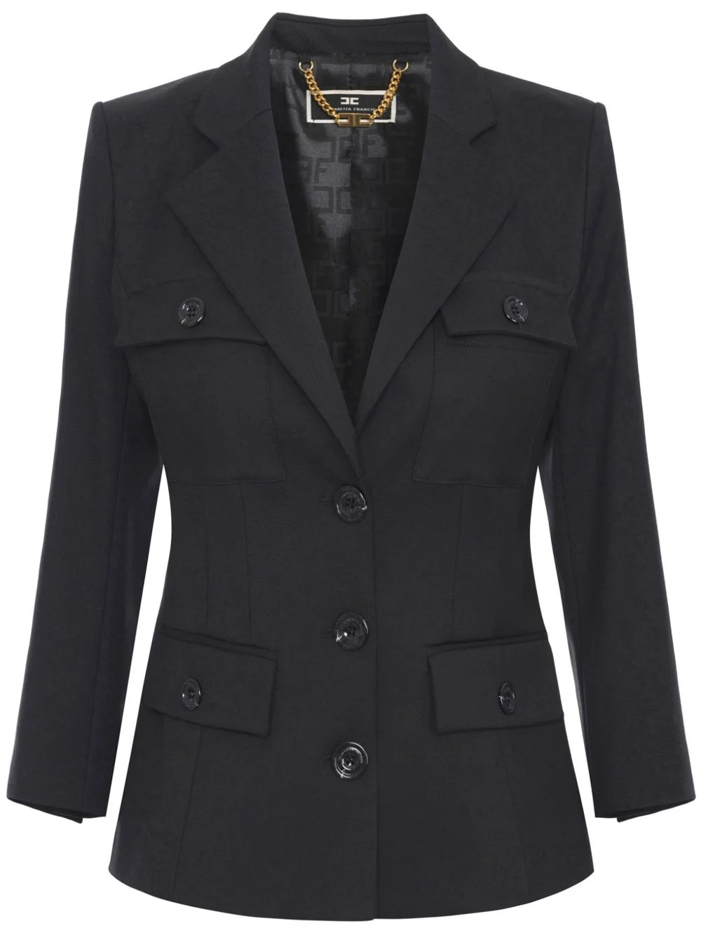 single-breasted crepe blazer Highlights - Black - Peak lapels - Front button fastening - Long sleeves - Four front flap pockets - Straight hem Made in Italy Composition Outer: Polyester 54%, Virgin Wool 44%, Elastane 2% Washing instructions Read Manufacturer Guidelines