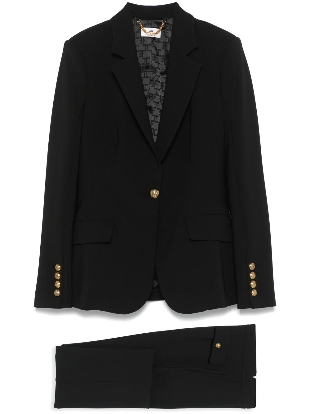 single-breasted crpe suit Highlights - Black - Front button fastening - Concealed side zip fastening - Shoulder pads - Buttoned cuffs Made in Italy Composition Outer: Polyester 96%, Elastane 4% Lining: Polyester 92%, Elastane 8% Washing instructions Hand Wash
