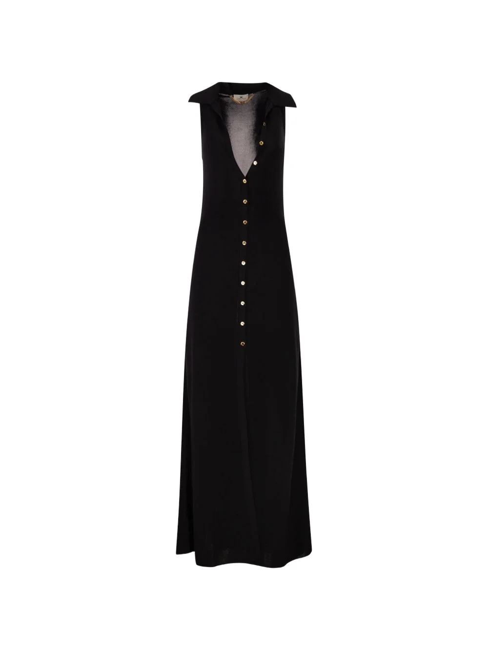 sleeveless maxi dress Highlights - Black - V-neck - Metal logo chain - Button fastening - Sleeveless - Shirt collar Imported Composition Viscose 100% Washing instructions Read Manufacturer Guidelines