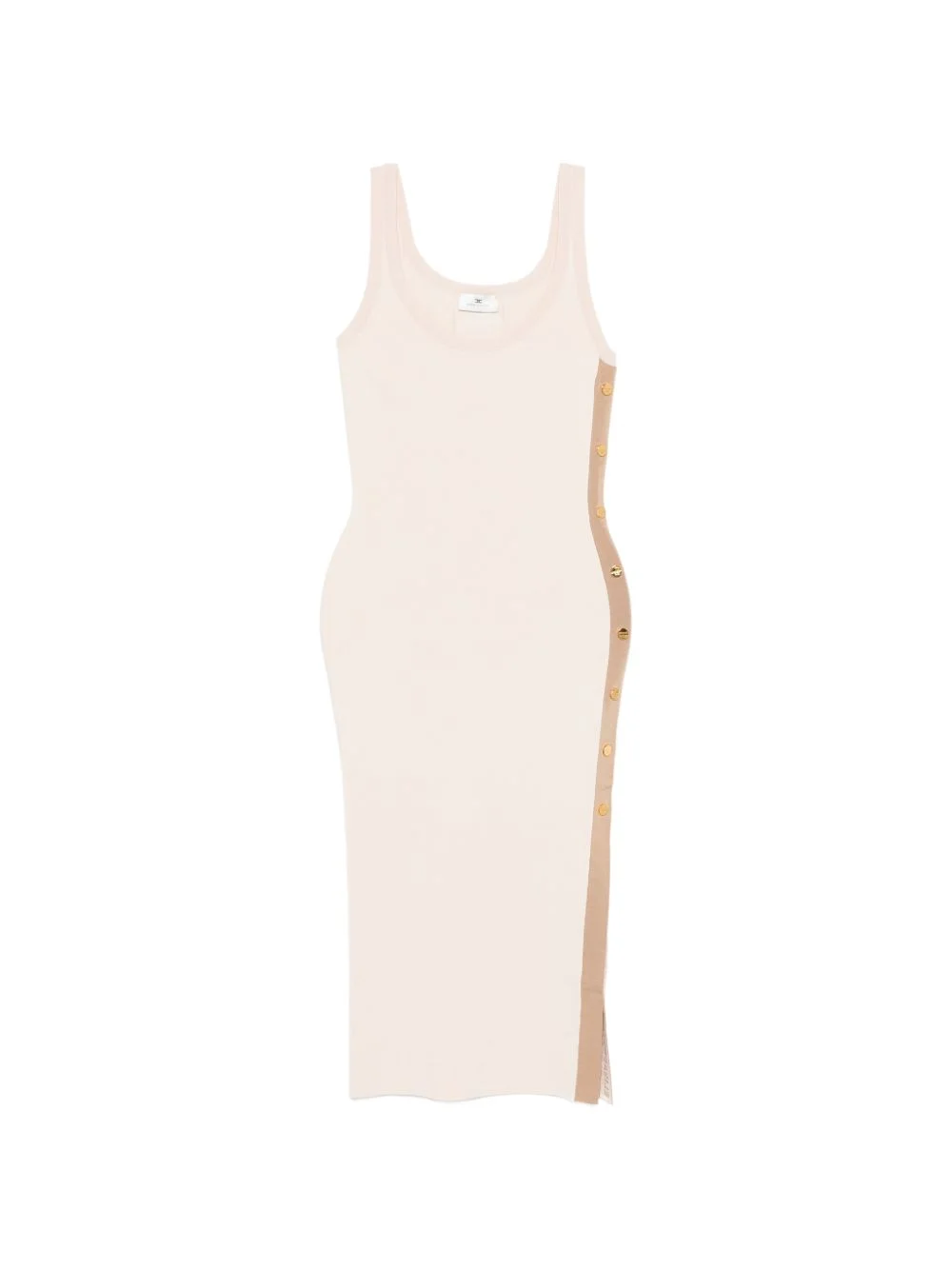 snap-button midi dress Highlights - Butter cream - Side snap-button fastening - Side trim - Scoop neck - Sleeveless Imported Composition Viscose 82%, Polyamide 18% Washing instructions Hand Wash
