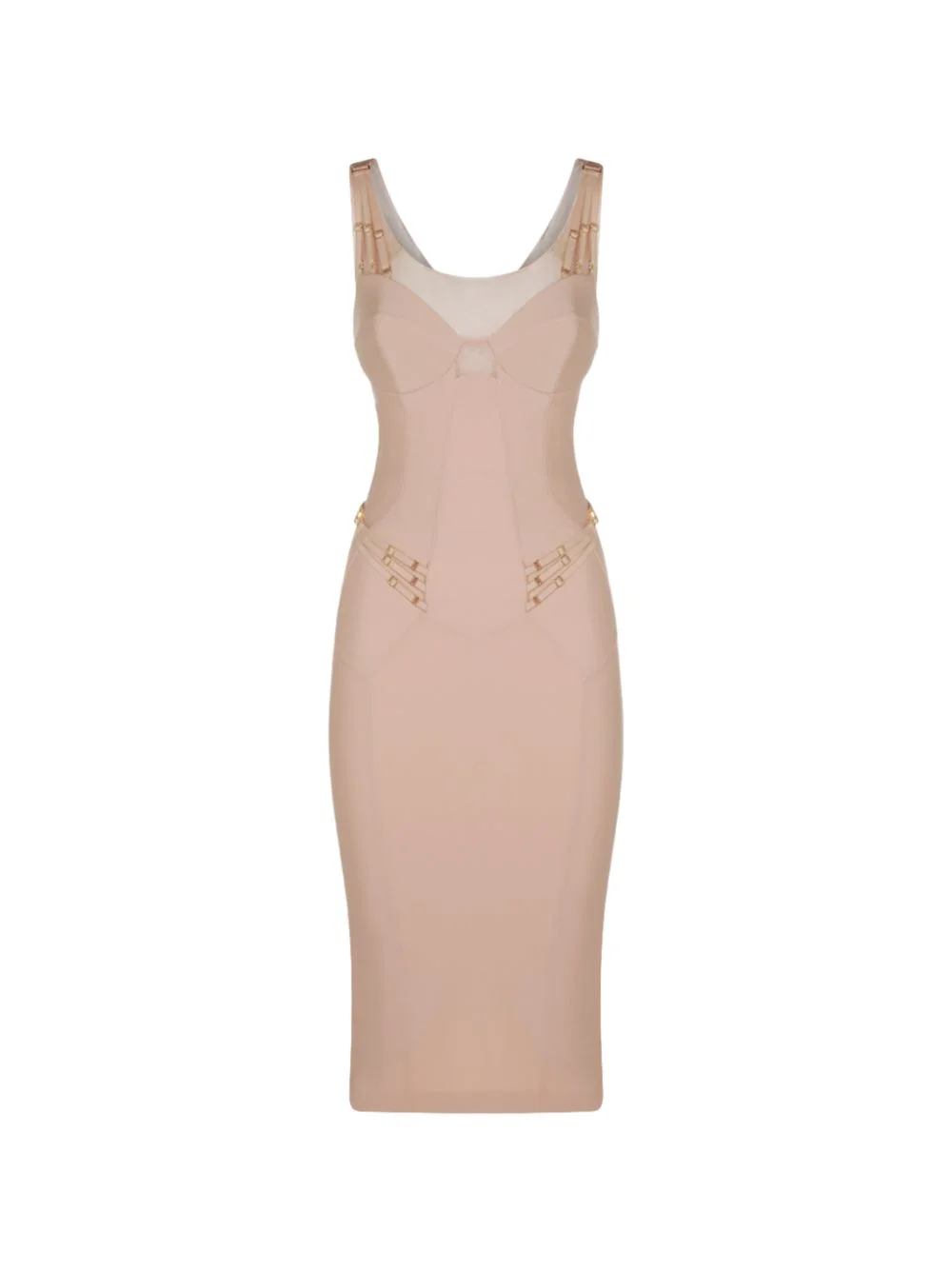straps-detail midi dress Highlights - Blush beige - Straps detail - Panelled design - Rear zip fastening - Rear slit - Sleeveless Made in Italy Composition Polyamide 75%, Spandex/Elastane 25% Washing instructions Read Manufacturer Guidelines
