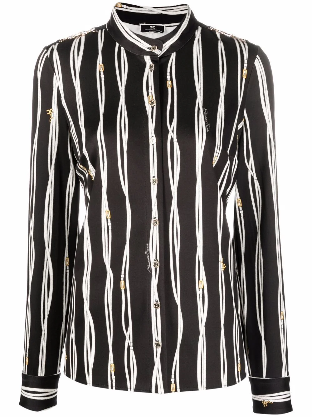 stripe-print band-collar shirt black/white all-over graphic print mock neck long sleeves front button fastening straight hem Made In Italy Composition Viscose 94%, Spandex/Elastane 6% Washing instructions Dry Clean Only