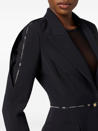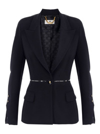 structured belted blazer Highlights - Navy blue - Peak lapels - Front button fastening - Logo detailing on belt - Front flap pockets - Button-fastening cuffs Made in Italy Composition Polyester 98%, Elastane 2%