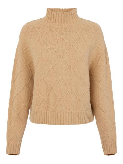 high-neck sweater Highlights - Black - High neck - Long sleeves - Diamond knitted-pattern - Ribbed trims - Wool-cashmere blend Made in Italy Composition Wool 90%, Cashmere 10% SIZE & FIT Model measurements Height 5 ft 10 in(1.77 m) Bust/Chest 33.07 in(84 cm) Hips 37 in(94 cm) Waist 24.8 in(63 cm) Washing instructions Hand Wash