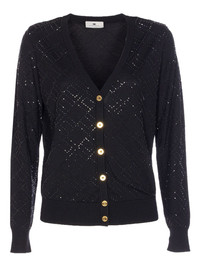 bead-embellished diamond-pattern cardigan Highlights - Black - V-neck - Button closure - Long sleeves - Diamond pattern - Beaded embellishment Made in Italy Composition Wool 100% Washing instructions Read Manufacturer Guidelines