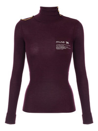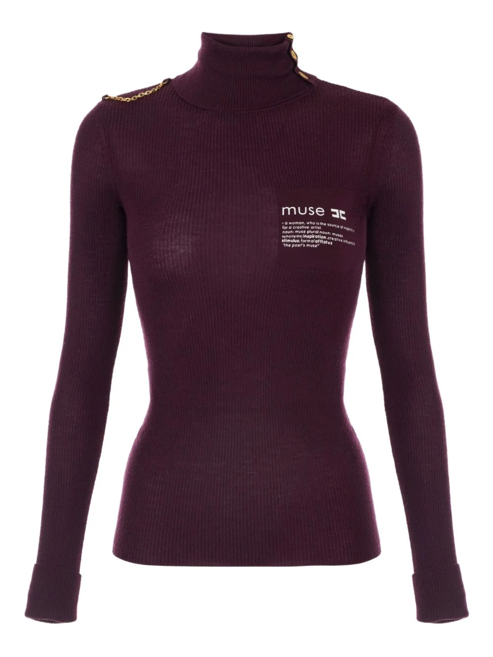 ribbed turtleneck sweater Highlights - Merlot - Ribbed texture - Turtleneck neckline - Gold-tone button detail - Long sleeves - Graphic print Imported Composition RWS Merino Wool 99%, Elastane 1% Washing instructions Read Manufacturer Guidelines