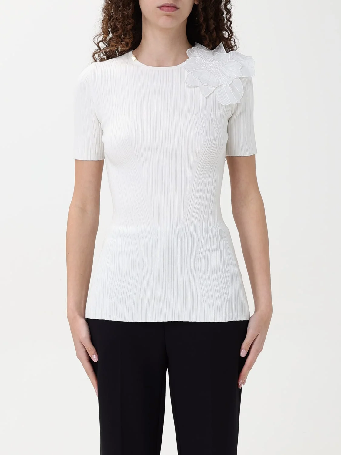 DESCRIPTION - Style: Elegant, Romantic - Neckline: Crewneck - Shoulders: Regular - Sleeves: Long - Bottom: With straight hemline - Details: With flower - Model: Knit - Materials: Jersey - Pattern: Embroidery, Plain-colored DETAILS AND CARE Composition not available SIZE AND FIT Sizes not available Size and fit Slim fit Designer code: MK55B 360 Giglio Code: G61010 Designer: Elisabetta Franchi Collection: Elisabetta Franchi Woman Category: Clothing Elisabetta Franchi
