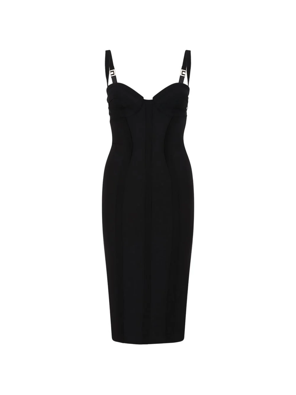sweetheart-neck midi dress Highlights - Black - Structured bust - Shoulder straps - Tonal seam detailing - Mid-length Imported Composition Polyester 95%, Elastane 5% Washing instructions Read Manufacturer Guidelines