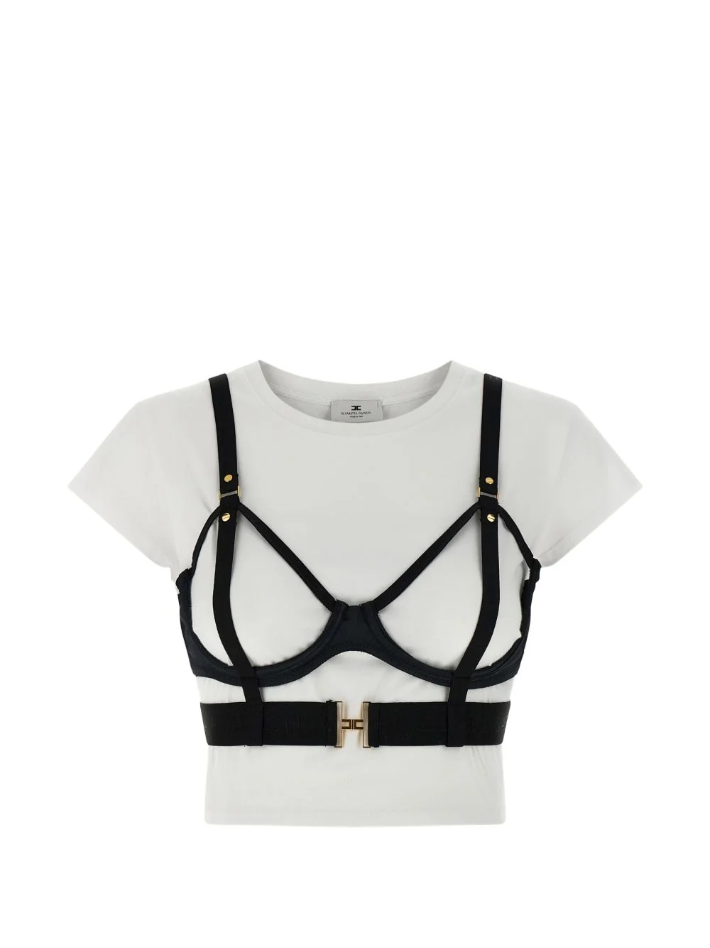 short-sleeve T-shirt Highlights - White and black - Includes bra - Short sleeves - Adjustable straps - Logo elastic band - Back hook closure Made in Italy Composition Cotton 100% Washing instructions Read Manufacturer Guidelines
