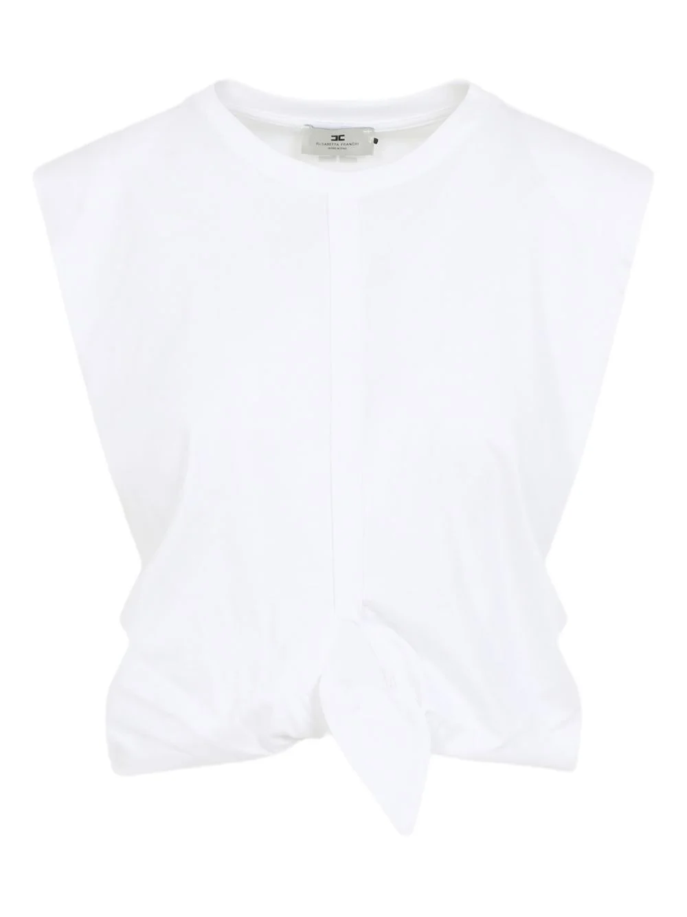 knot-detail T-shirt Highlights - White - Crew neck - Knot detail - Sleeveless - Shoulder pads - Gold-tone detail Made in Italy Composition Cotton 100% Washing instructions Read Manufacturer Guidelines