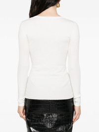 button-detailed ribbed top Highlights - Off-white - Ribbed texture - Gold-tone button embellishment - V-neck - Long sleeves Imported Composition Lyocell 64%, Polyamide 20%, Silk 16% SIZE & FIT Model measurements Height 5 ft 9 in(1.75 m) Bust/Chest 32.67 in(83 cm) Hips 36.22 in(92 cm) Waist 24.8 in(63 cm) Washing instructions Hand Wash
