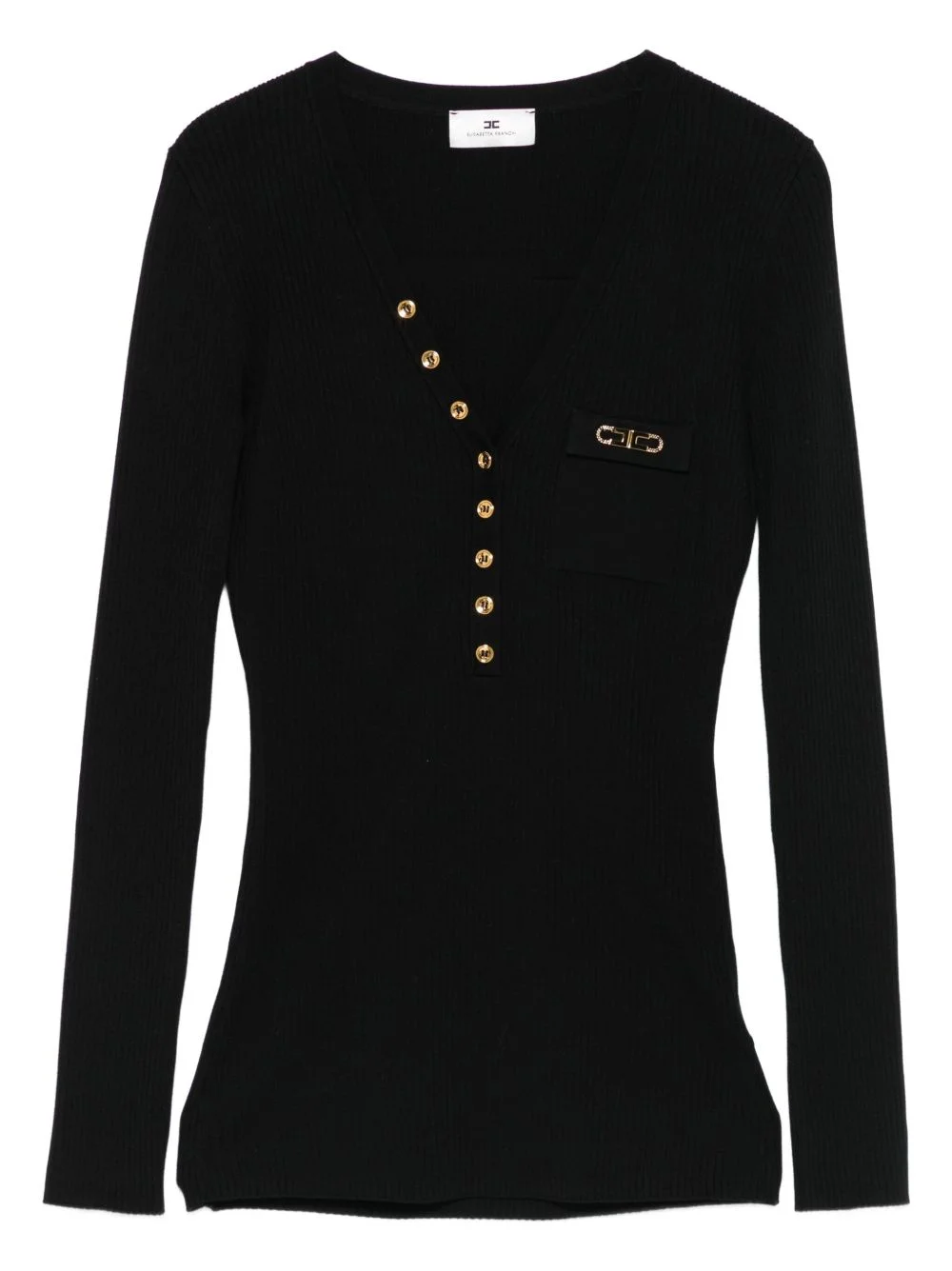 logo-detail long-sleeved top Highlights - Black - Ribbed knit - Button placket - Gold-tone buttons - Logo detail Imported Composition Lyocell 64%, Polyamide 20%, Silk 16% SIZE & FIT Model measurements Height 5 ft 10 in(1.78 m) Bust/Chest 33.85 in(86 cm) Hips 36.61 in(93 cm) Waist 26.77 in(68 cm) Washing instructions Hand Wash