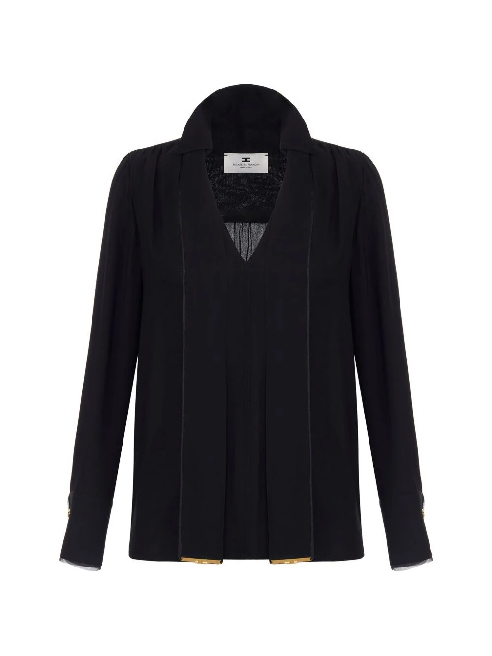 tie-neck blouse Highlights - Black - Tie detail - V-neck - Long sleeves - Buttoned cuffs Imported Composition Viscose 100% Washing instructions Read Manufacturer Guidelines