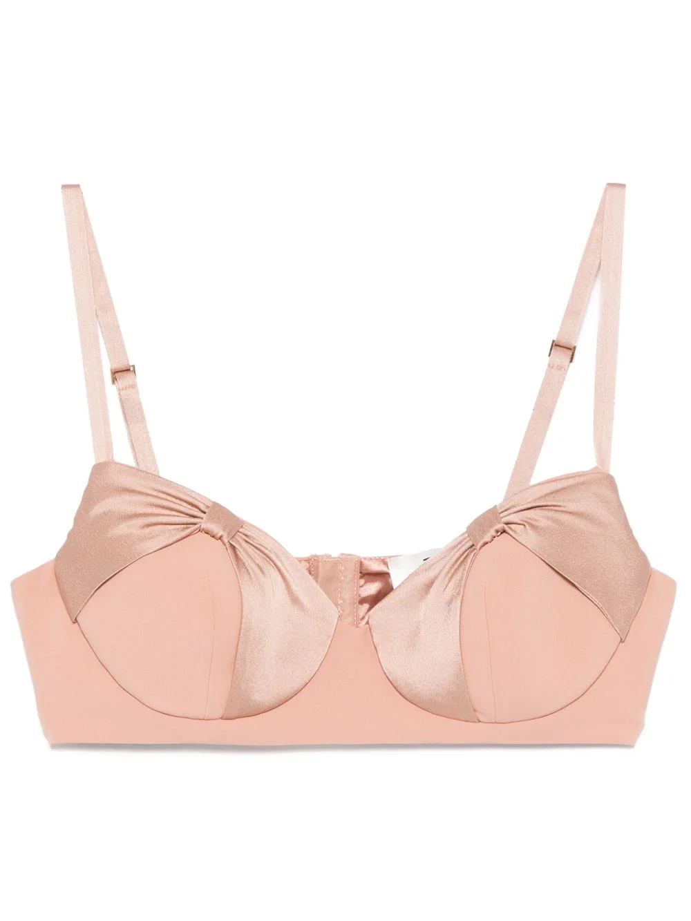 satin-bow crepe top Highlights - Almond beige - Rear hook fastening - Adjustable shoulder straps - Built-in cups bra - Underwire cup Made in Italy Composition Lining: Polyester 97%, Elastane 3% Outer: Polyester 95%, Elastane 5% SIZE & FIT Model measurements Height 5 ft 10 in(1.78 m) Bust/Chest 31.49 in(80 cm) Hips 37 in(94 cm) Waist 23.62 in(60 cm) FittingInformation Designed for a close fit throughout The moulded cups offer shape and support Made from a midweight fabric Washing instructions Dry Clean Only