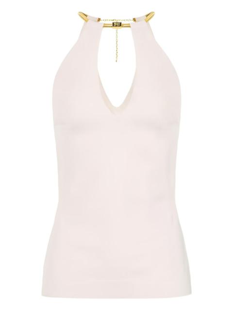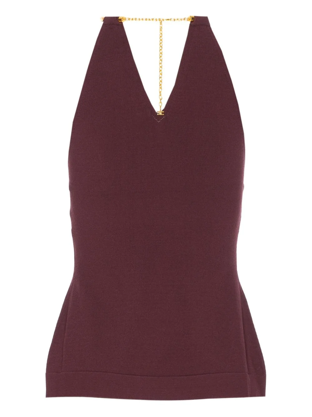 chain-neckline sleeveless top Highlights - Bordeaux - Chain neckline detail - Cut-out detail - Sleeveless - V-neck Made in Italy Composition Viscose 83%, Polyester 17% Washing instructions Read Manufacturer Guidelines