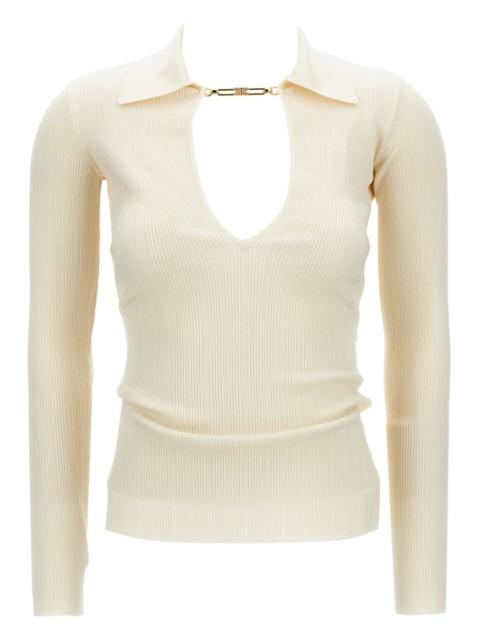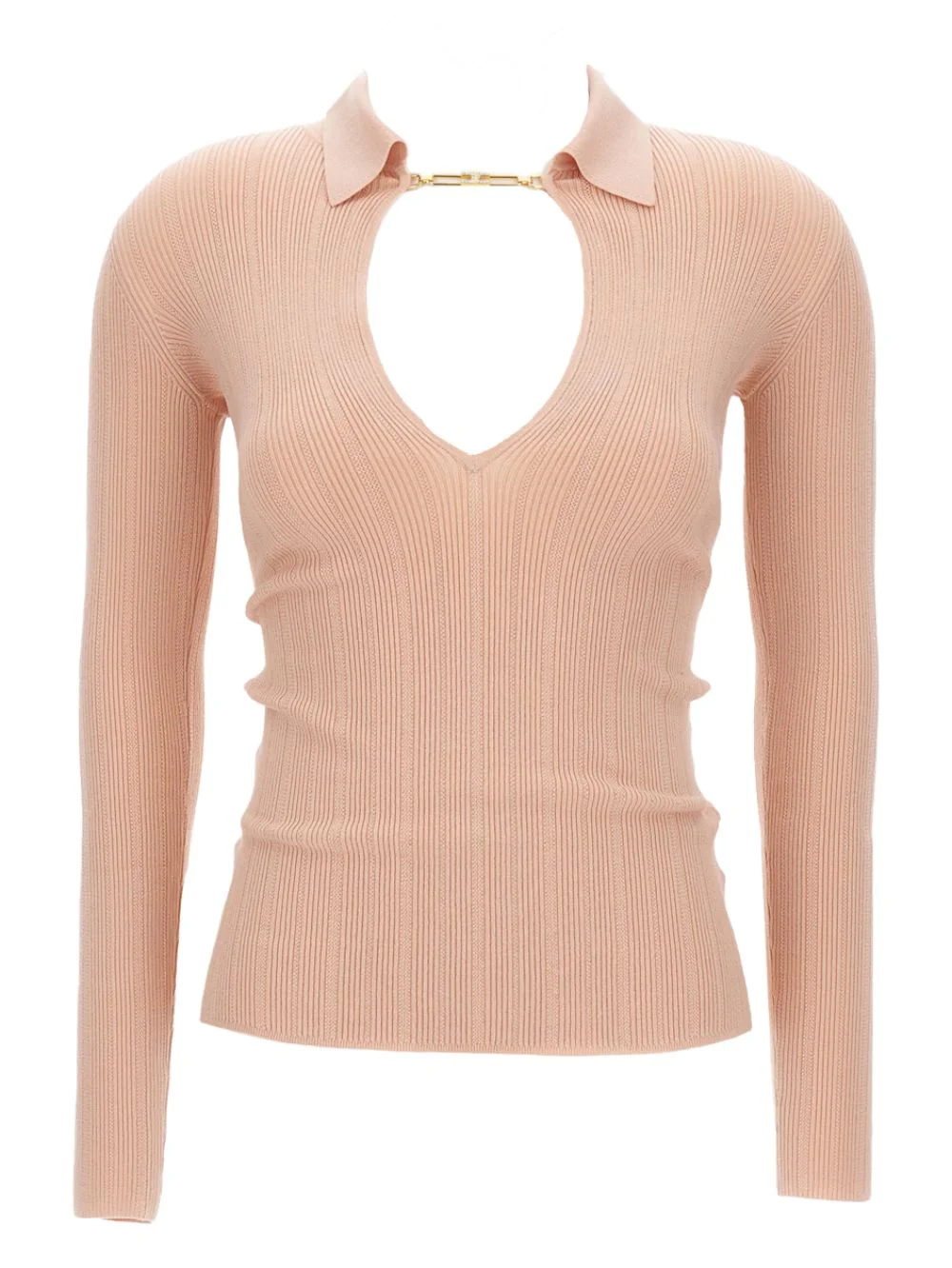 ribbed polo-neck sweater Highlights - Light beige - Ribbed knit - Polo collar - Keyhole detail - Long sleeves Made in Italy Composition Lyocell 64%, Polyamide 20%, Silk 16% Washing instructions Dry Clean Only