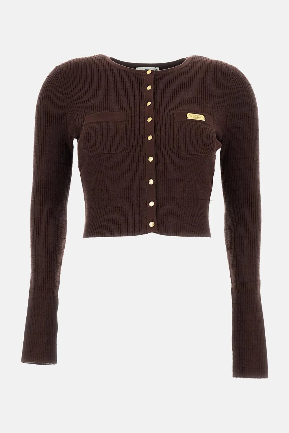 Fitted cut sweater Round neckline Central buttons Front pocket Gold details Details and Care Color: Marrone Composition: 64% LY 20% PA16% SE Made in: Cina Sku: MK88B61E2644