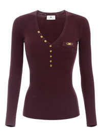 ribbed button top Highlights - Burgundy - Button fastening - V-neck - Long sleeves - Gold-tone logo plaque Imported Composition Lyocell 64%, Polyamide 20%, Fabric 16% Washing instructions Read Manufacturer Guidelines