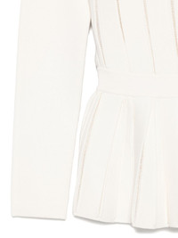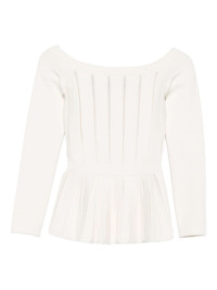 pleated panelled top Highlights - Off-white - Pleated hem - Long sleeves - Panelled bodice - Off-shoulder neckline - Subtle seam detailing Made in Italy Composition Viscose 53%, Polyamide 42%, Polyester 5% Washing instructions Hand Wash