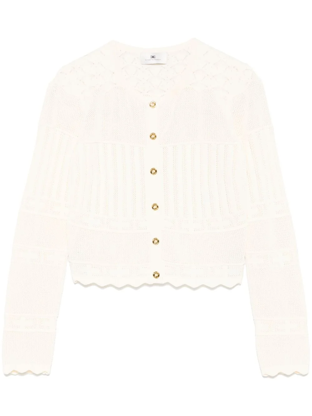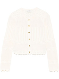 pointelle-knit cardigan Highlights - Almond beige - Front button fastening - Scallop edge - Crew neck - Long sleeves Imported Composition Viscose 65%, Polyamide 35% SIZE & FIT Model measurements Height 5 ft 10 in(1.78 m) Bust/Chest 33.46 in(85 cm) Hips 36.22 in(92 cm) Waist 23.22 in(59 cm) FittingInformation Designed for a close fit throughout Made with a midweight knit, this piece offers some stretch Washing instructions Hand Wash