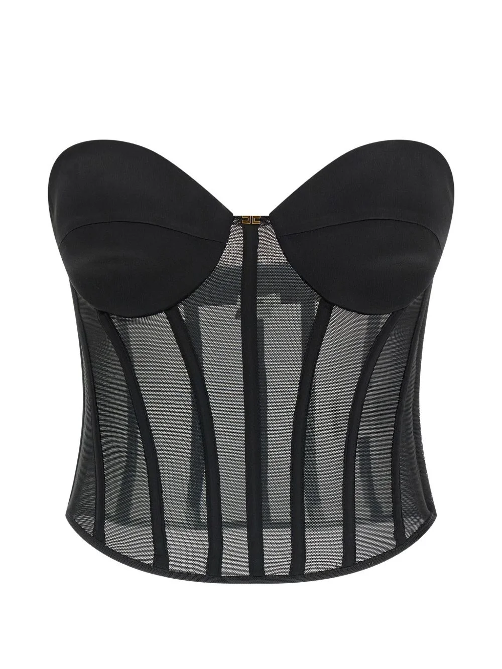 tulle bustier top Highlights - Black - Tulle - Covered cups - Logo detail - Side hook closure - Bustier construction Made in Italy Composition Polyamide 75%, Spandex/Elastane 25% Washing instructions Read Manufacturer Guidelines