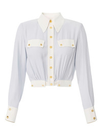 two-colour buttoned shirt Highlights - Light blue - Georgette - Classic collar - Long sleeves - Gold-tone buttons - Two-colour design Made in Italy Composition Viscose 100% Washing instructions Read Manufacturer Guidelines