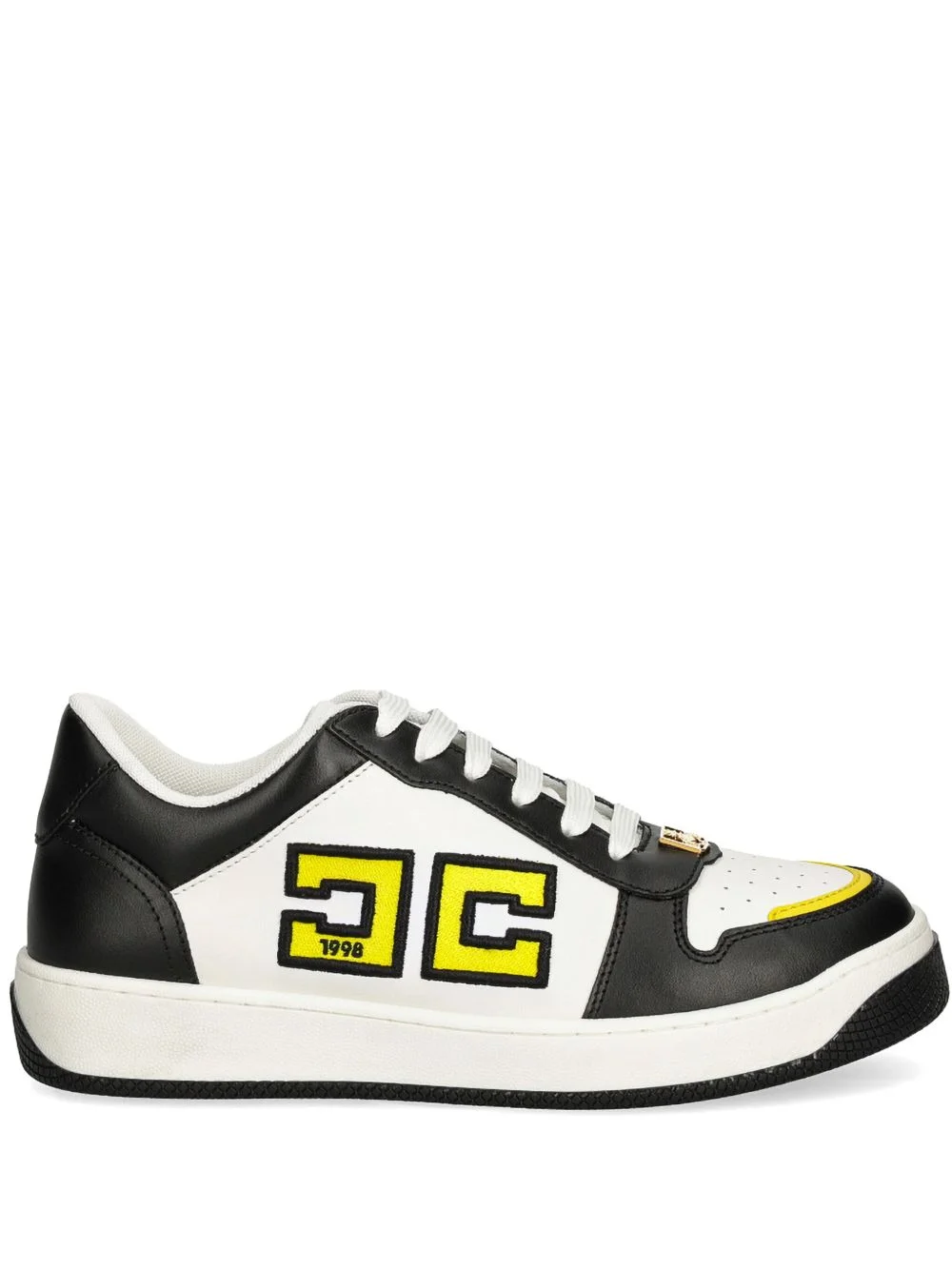 two-tone leather sneakers Highlights - Black/white - Calf leather - Two-tone design - Applique logo - Front lace-up fastening - Logo-print tongue - Gold-tone logo plaque - Contrasting heel counter - Flat rubber sole Made in Italy Composition Leather 100%