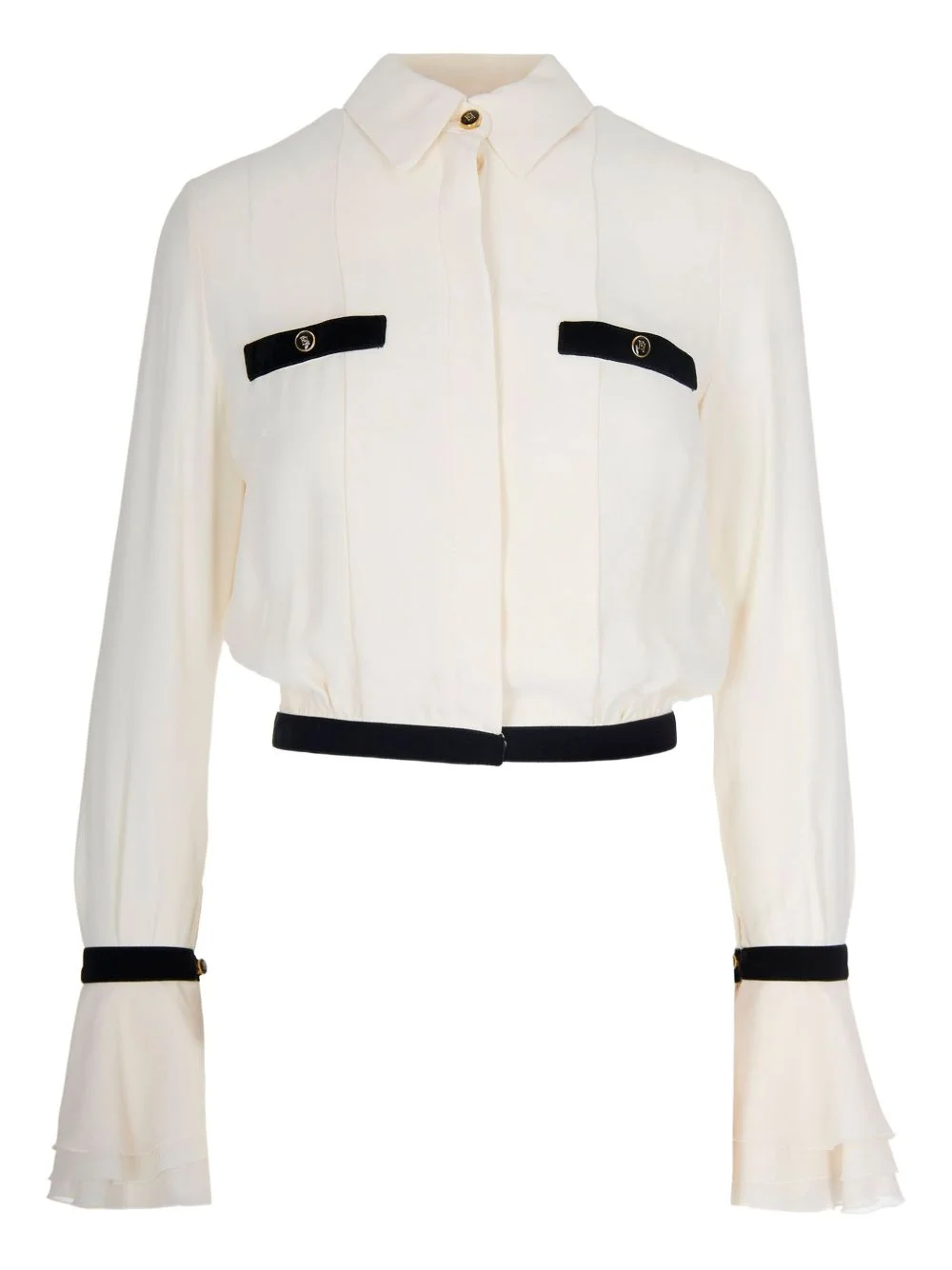 two-tone shirt Highlights - White - Concealed front fastening - Two chest welt pockets - Long sleeves - Cropped Made in Italy Composition Viscose 100% Washing instructions Read Manufacturer Guidelines