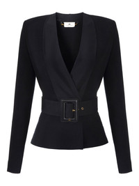 v-neck belted blazer Highlights - Black - V-neck - Fitted waist - Wide belt - Rectangular buckle - Long sleeves Imported Composition Viscose 60%, Polyester 23%, Other fibres 17% Washing instructions Read Manufacturer Guidelines